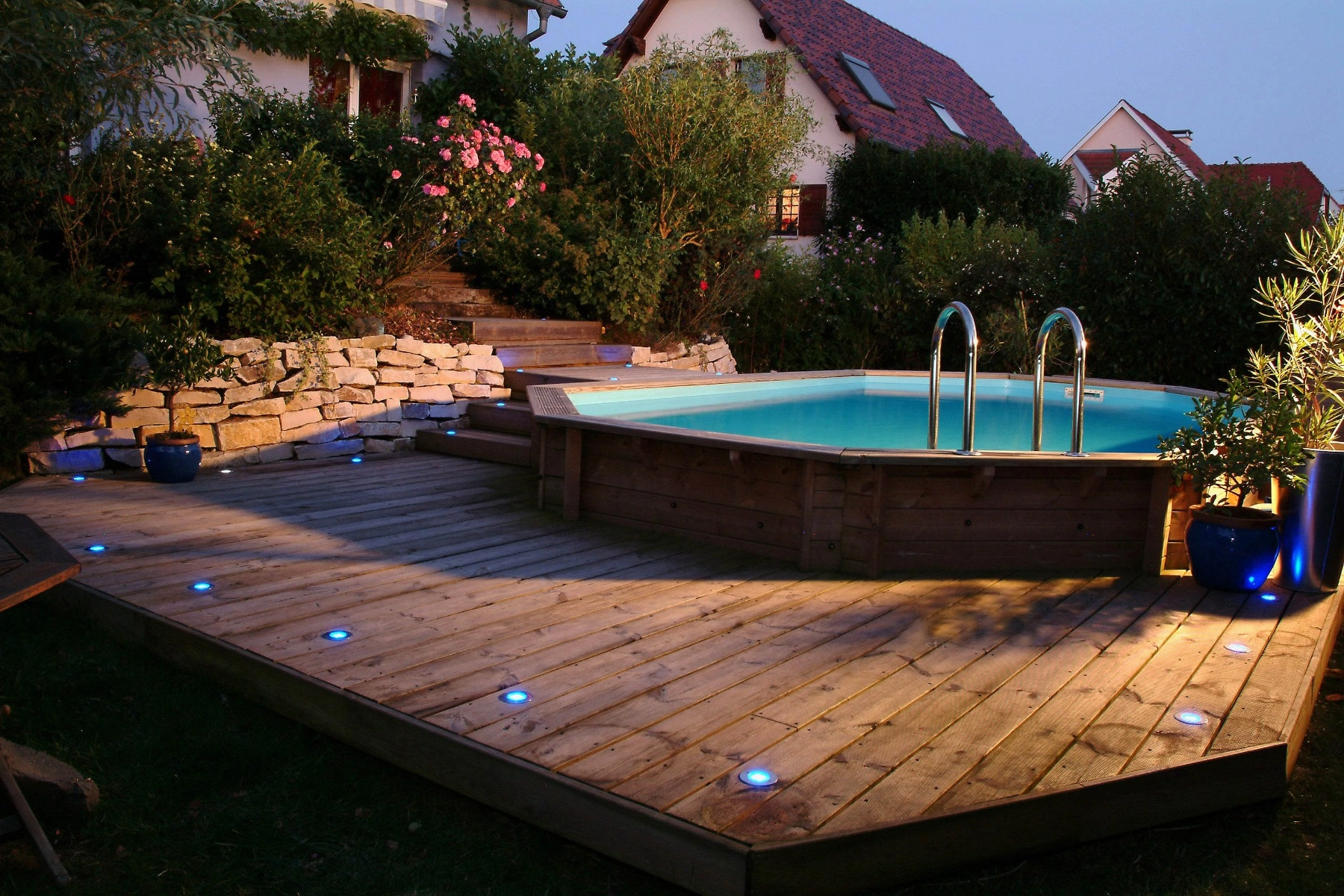 Les piscines en bois sont à l'origine pensées pour être placées directement sur votre terrain ou sur une terrasse existante ou construite dans ce but. Cependant, les piscines en bois étant des piscines rigides et résistantes dans le temps, peuvent être enterrée d'une partie. Cela donne l'impression d'une piscine enterrée qui a une toute autre allure. Grâce à ce matériaux naturel votre piscine se fondra parfaitement dans votre jardin qui plus est si il est arboré et fleurit.