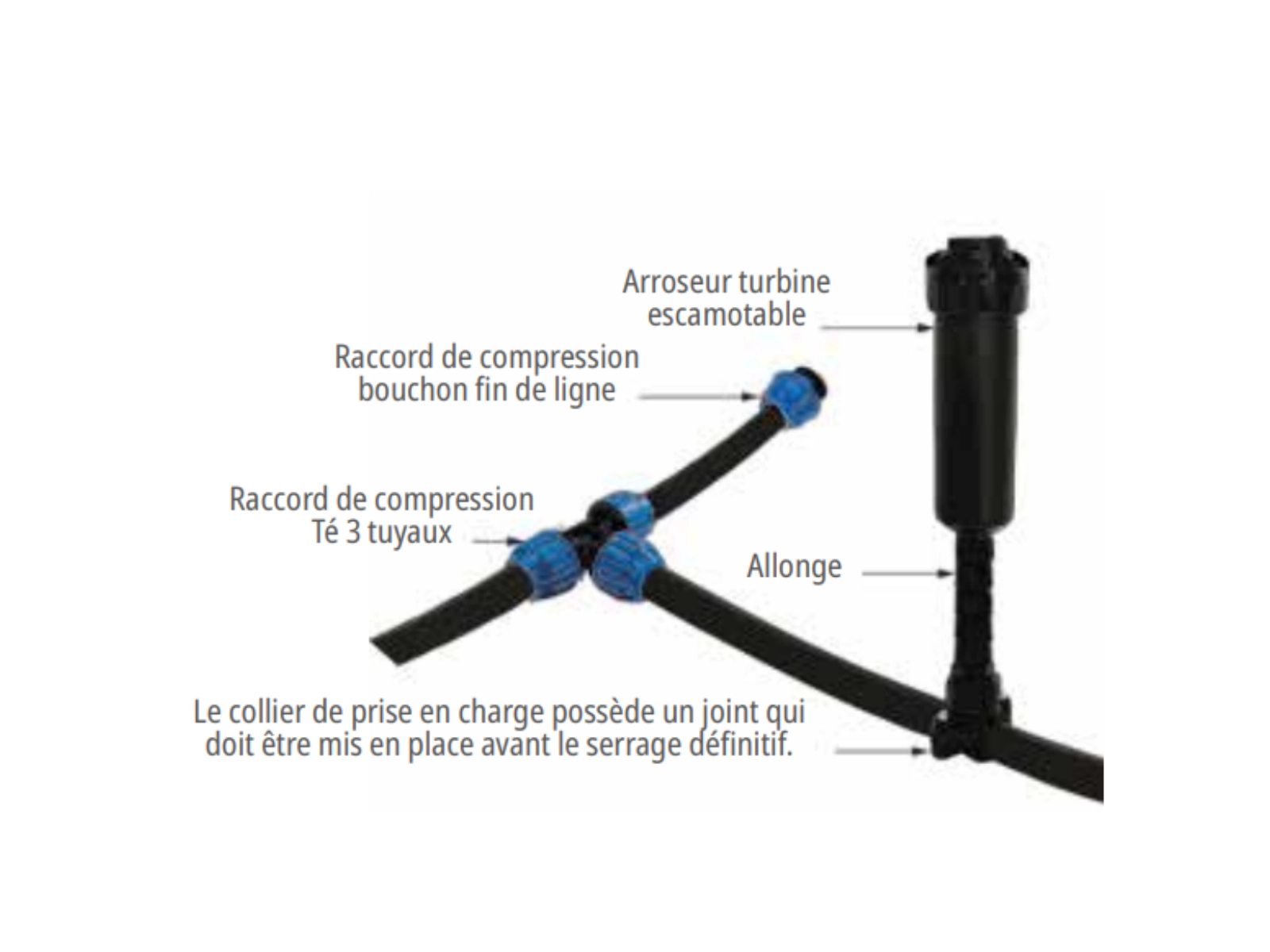 Les différents tronçons de tuyau se raccorderont à l’aide des tés, coudes, manchons et raccords.