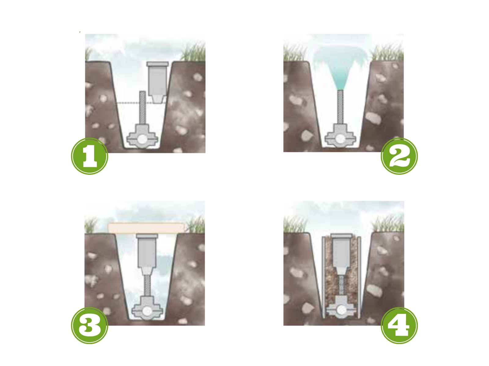 Préparation : Avant de commencer, préparez le matériel et regroupez-le par secteur. Symbolisez l'emplacement des arroseurs et tracez les tranchées. Réalisez des tranchées d'une profondeur de 25 à 30 cm et conservez les plaques de gazon si possible. Déroulez les tuyaux dans les tranchées au fur et à mesure.